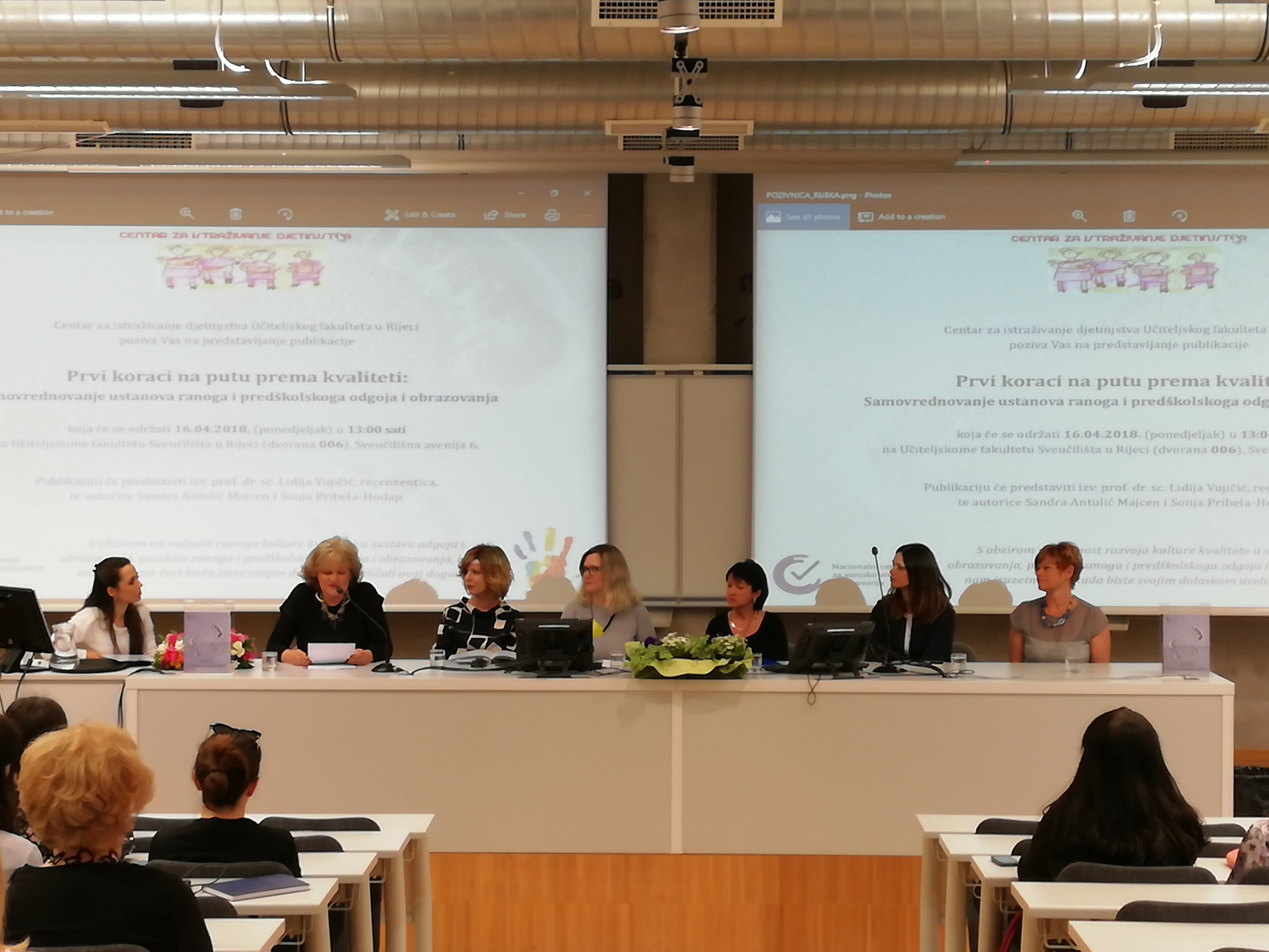 Dana 16. travnja 2018. godine, na Učiteljskom fakultetu Sveučilišta u Rijeci, a u organizaciji Centra za istraživanje djetinjstva, održana je promocija publikacije Prvi koraci na putu prema kvaliteti: Samovrednovanje ustanova ranoga i predškolskoga odgoja i obrazovanja, autorica dr. sc. Sandre Antulić Majcen i Sonje Pribela-Hodap, univ. spec. psych., u izdanju Nacionalnog centra za vanjsko vrednovanje obrazovanja.