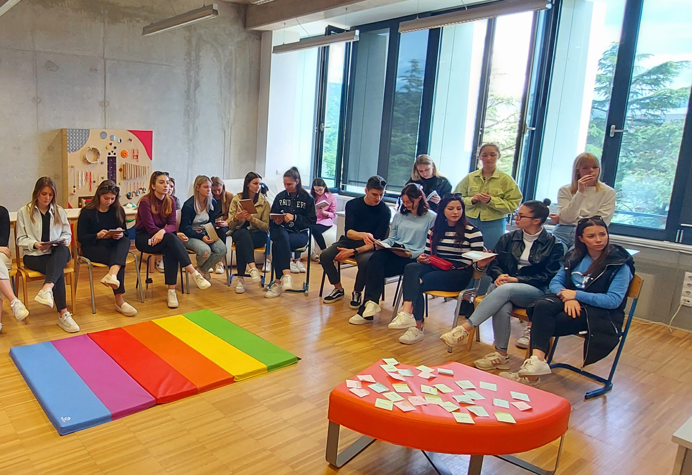 Dana 27. travnja 2023. godine, na Učiteljskom fakultetu u Rijeci, u organizaciji Centra za istraživanje djetinjstva i u sklopu Programa obilježavanja 50 godina Sveučilišta u Rijeci, pod vodstvom izv. prof. dr. sc. Petre Pejić Papak i učiteljice mentorice Bojane Lanča, sa studentima 2. i 3. godine Učiteljskog studija, provedena je radionica na temu Aktivno i suradničko učenje. Cilj radionice bio je upoznati studente sa strategijama suradničkog učenja u integriranom tematskom poučavanju.