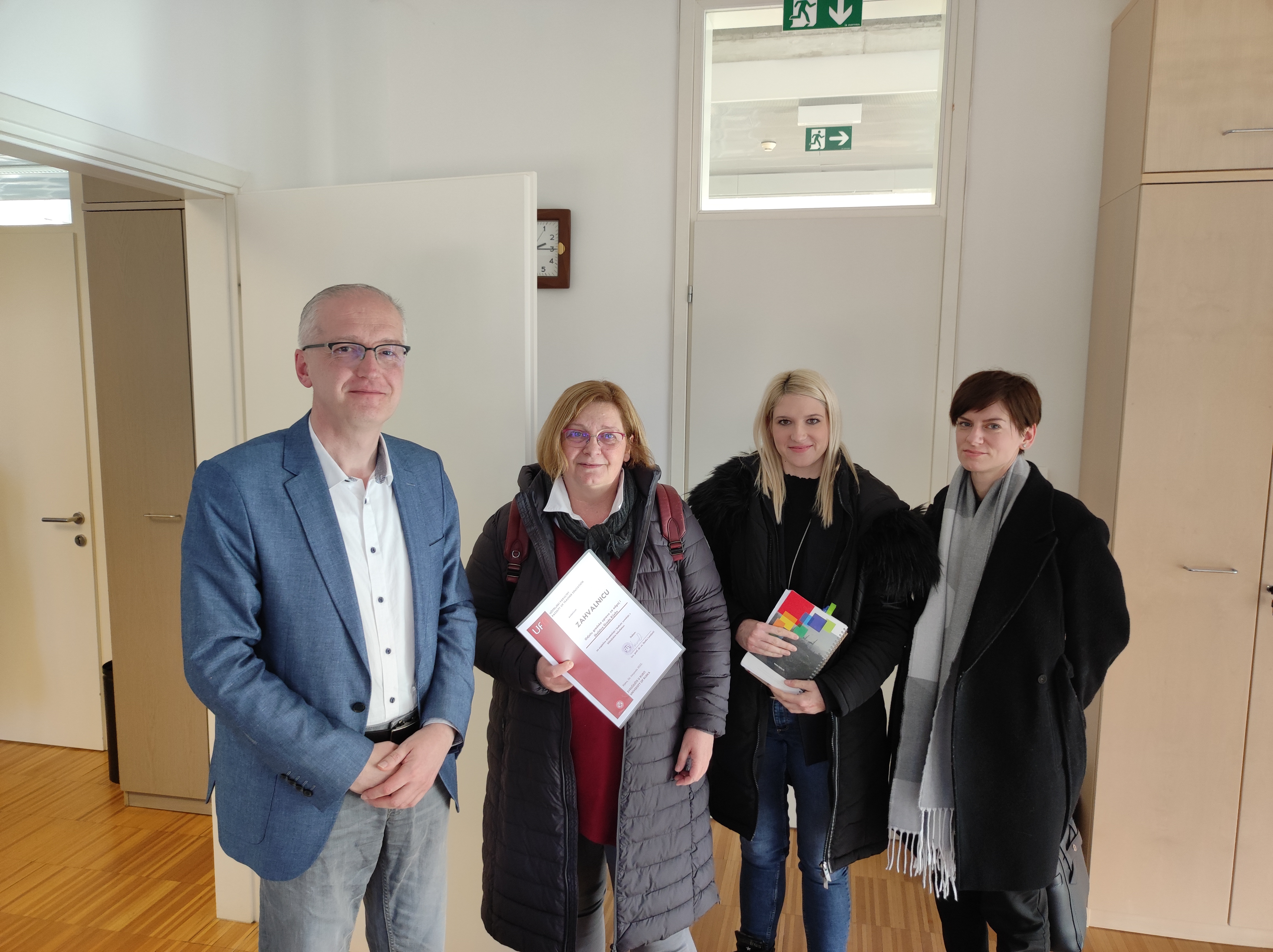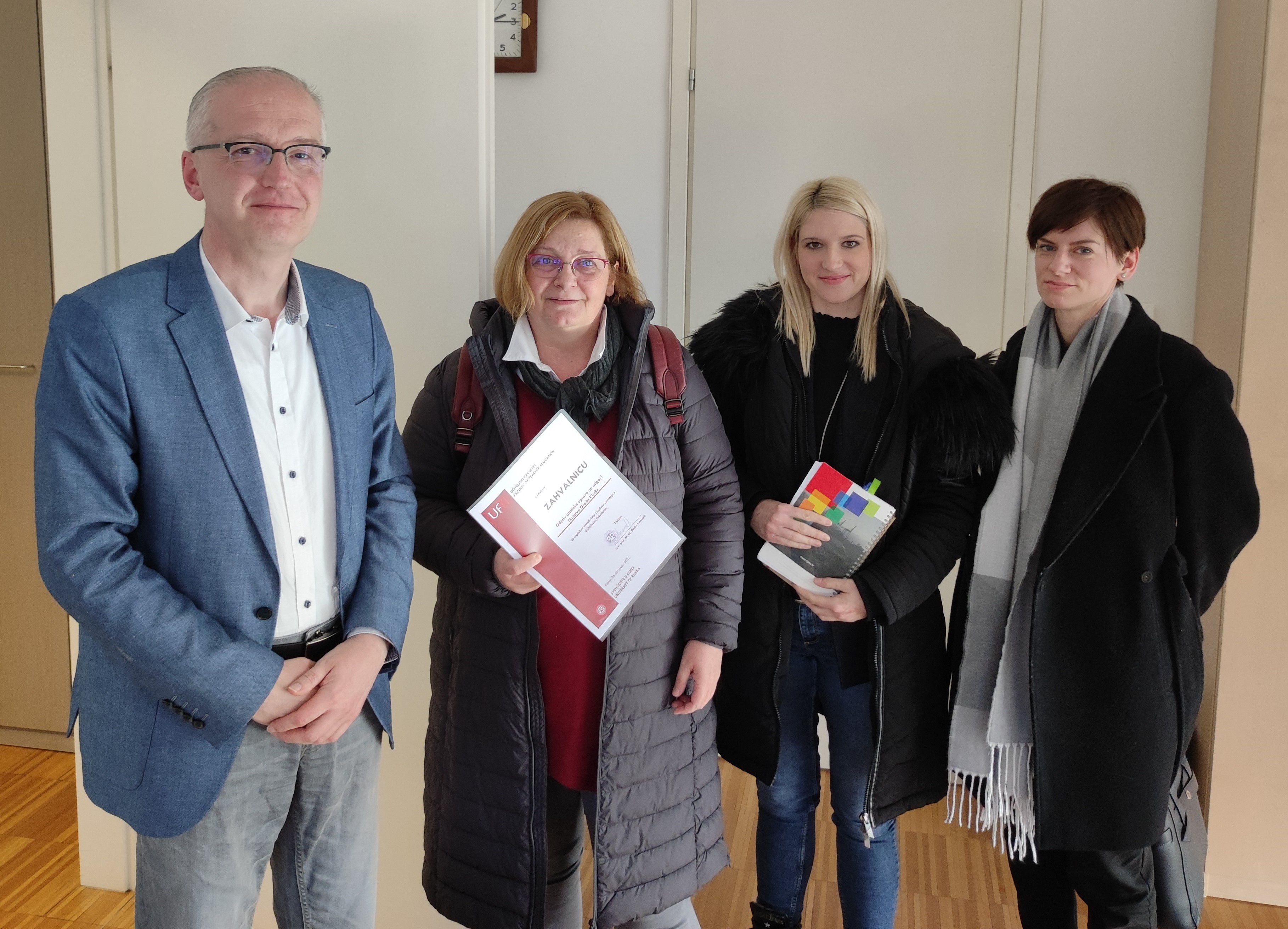 Dana 15. veljače 2023., na Fakultetu je održan sastanak s pročelnicom Odjela za odgoj i školstvo Grada Rijeke Sandom Sušanj zatim Lanom Golob, suradnicom za osnovnoškolske programe i Majom Manestar, suradnicom za predškolski odgoj. Dekan izv. prof. dr. sc. Darko Lončarić i tajnik Fakulteta Željko Ševerdija s cijenjenim su gošćama razgovarali o mogućnostima i unapređenju buduće suradnje i zajedničkim projektima između Fakulteta i ustanova ranog i predškolskog odgoja i obrazovanja te osnovnih škola kojima je osnivač Grad Rijeka.
