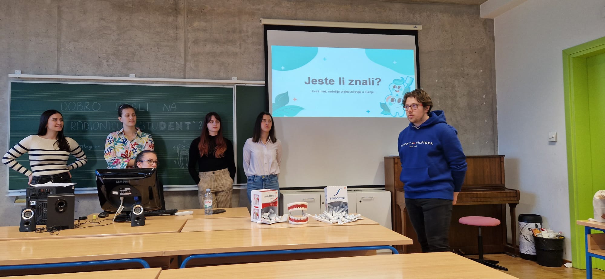 Na poziv Studentskog zbora Učiteljskog fakulteta u Rijeci, studenti iz Hrvatske udruge studenata stomatologije održali su zanimljivo interaktivno predavanje na temu oralne higijene. Studenti predavači su razbijali mitove o oralnoj higijeni i prenijeli potrebne informacije za oralnu njegu djece predškolske i školske dobi.