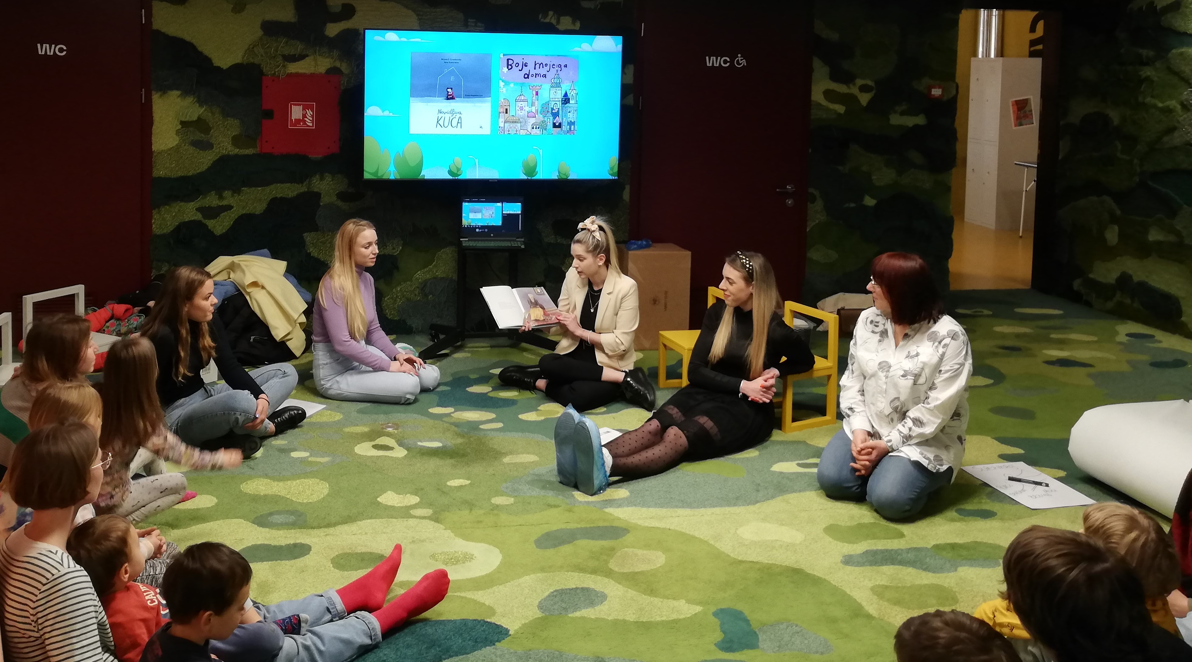 U Tjednu dobre dječje knjige: 19.04.23. pričaonicu na temu migranata, uz čitanje slikovnica Nevidljiva kuća i Boje mojeg doma pripremile su Ivona Marešić, Karla Nešković Vranješ, Nina Mrvić i Angela Petrovska.