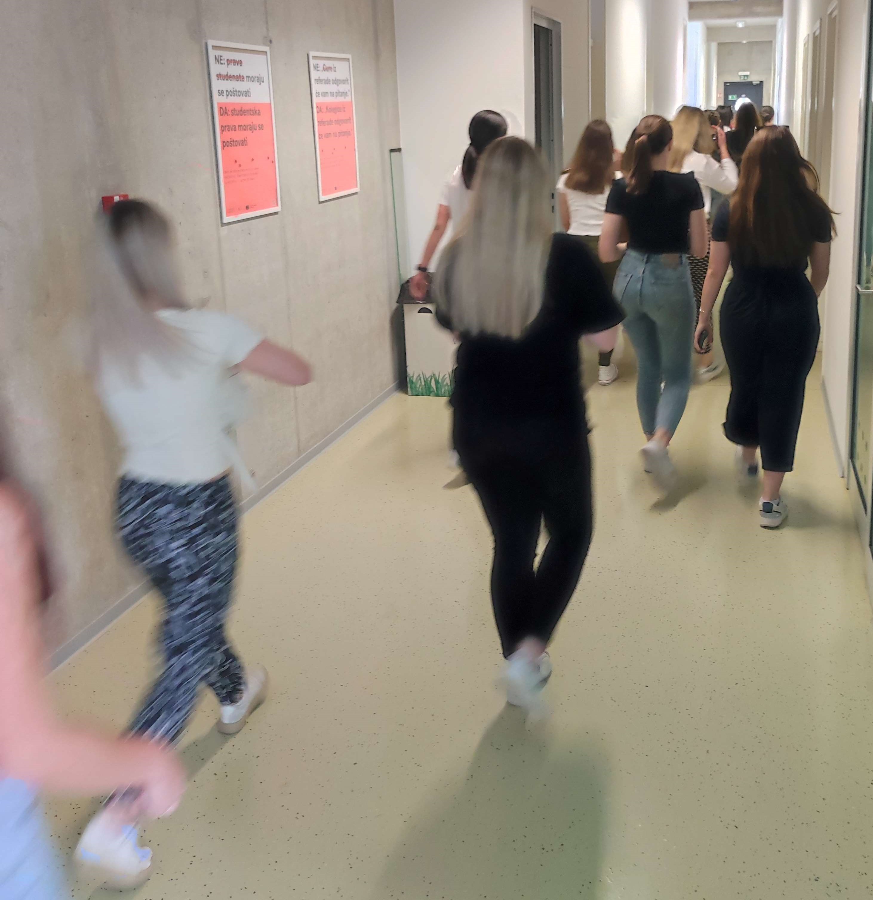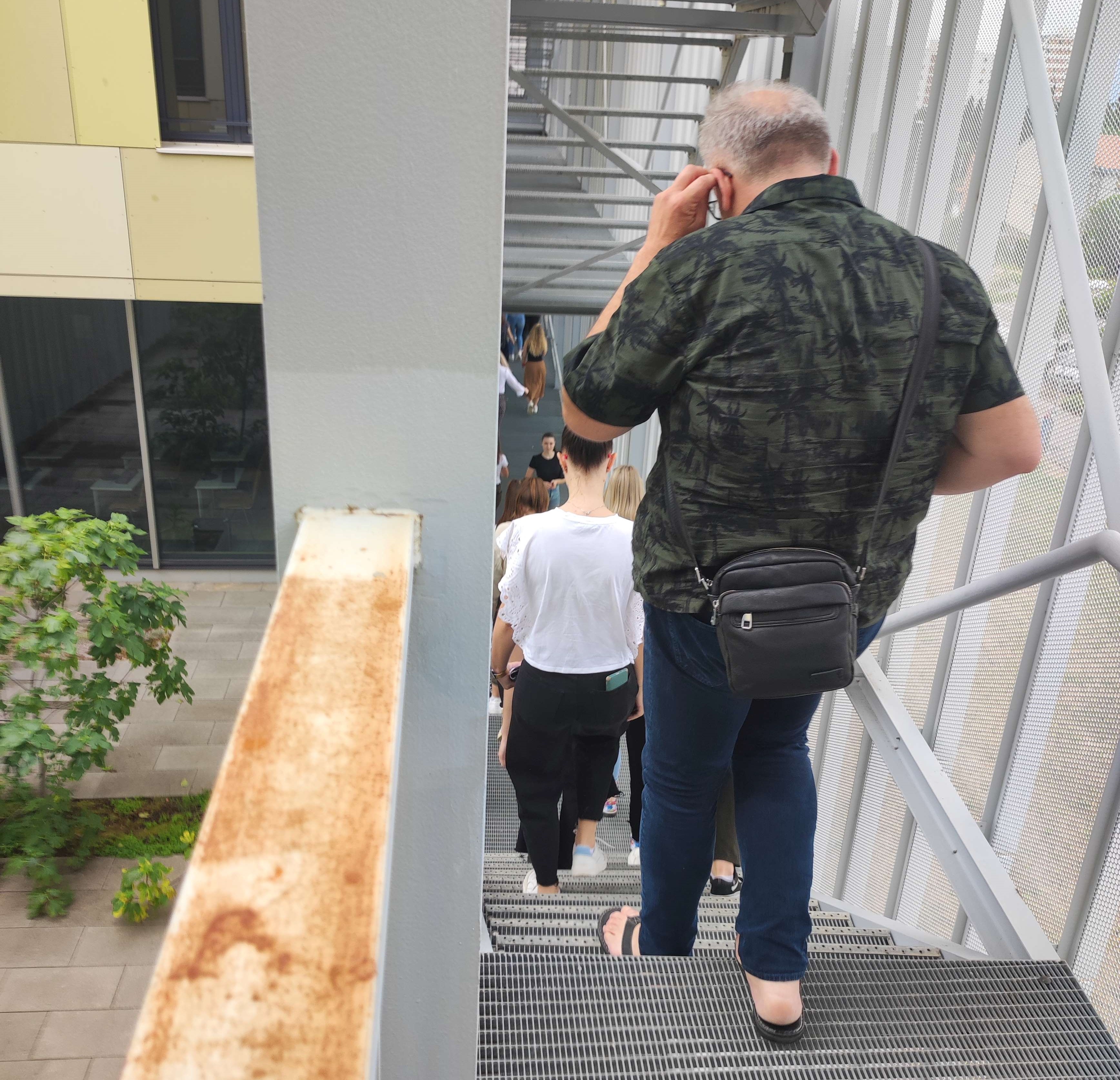 U vježbi evakuacije sudjelovali su studenti/studentice 3. godine sveučilišnog integriranog prijediplomskog i diplomskog Učiteljskog studija zajedno s nastavnikom Darkom Đekićem, v. pred. Vježba je uspješno provedena.
