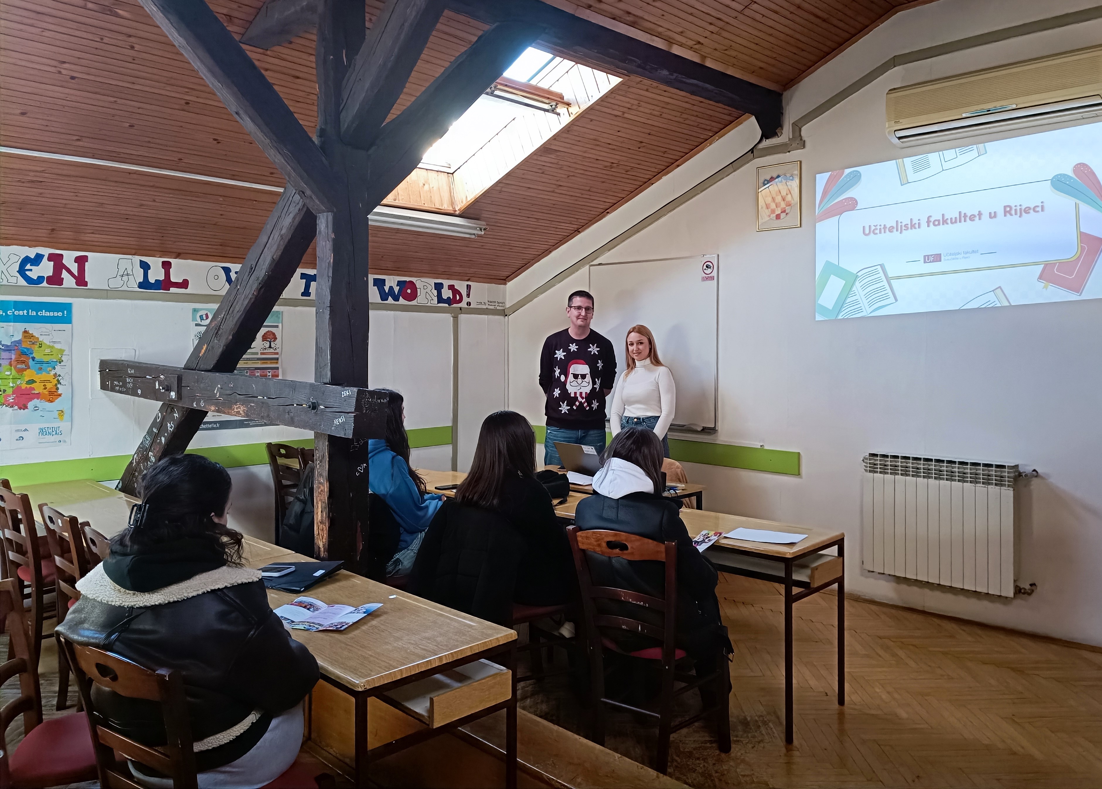 Dana 18. 12. predstavnici Studentskog zbora UFRI-ja zajedno s nastavnicom doc. dr. sc. Zlatom Tomljenović predstavili su studijske programe i ostale sadržaje vezane za Učiteljski fakultet u Rijeci. Poziv Učiteljskom fakultetu uslijedio je na inicijativu učenika Gimnazije, koji su iskazali interes za studiranjem na UFRI-ju. Sastanak je protekao u dinamičnom ritmu i interakciji, gdje su predstavnici Studentskog zbora izmijenili s učenicima sve važne informacije i svoja iskustva studiranja na našem Fakultetu.