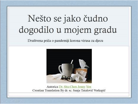 Na N1 je objavljena virtualna slikovnica koja može pomoći da odgovorite djeci na pitanja koja postavljaju tijekom epidemiije corona virusa. Slikovnicu je s engleskog prevela i prilagodila izv. prof. dr. sc. Sanja Tatalović Vorkapić, a lekturu hrvatske verzije napravila je doc. dr. sc. Maja Opašić. Slikovnica je OVDJE.