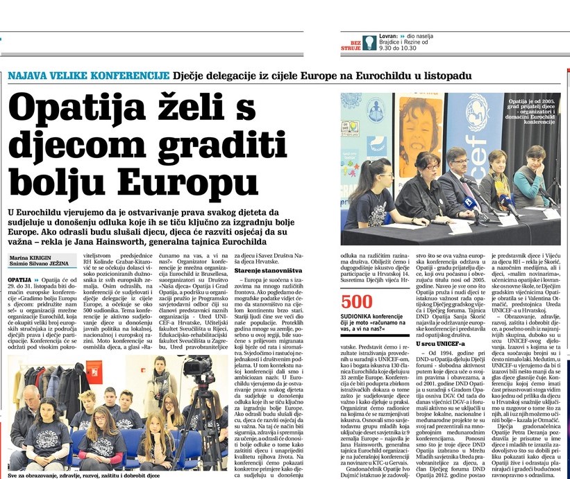 Novi list najavljuje europsku konferenciju pod nazivom "Gradimo bolju Europu s djecom" koja će se odrati od 29. do 30. listopada 2018. godine u Opatiji, uz organizacijsku podršku Učiteljskog fakulteta u Rijeci.